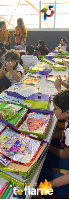 "We have many things in common, although we live in different countries and through this experience, the students were able to practice their Spanish and appreciate the richness of another culture. Each tin heart has meaningful drawings of their favorite things."